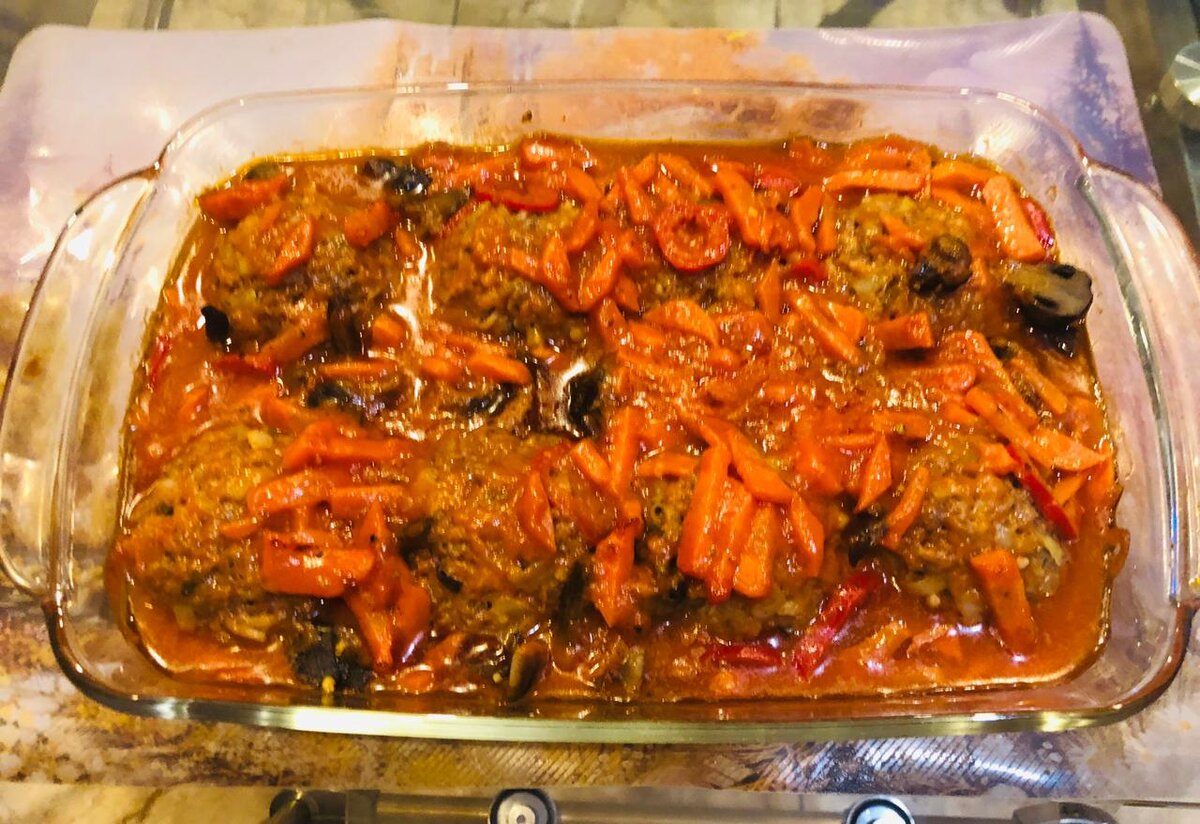 6. Слепить из фарша крупные шарики -тефтели и выложить их в форму для запекания.