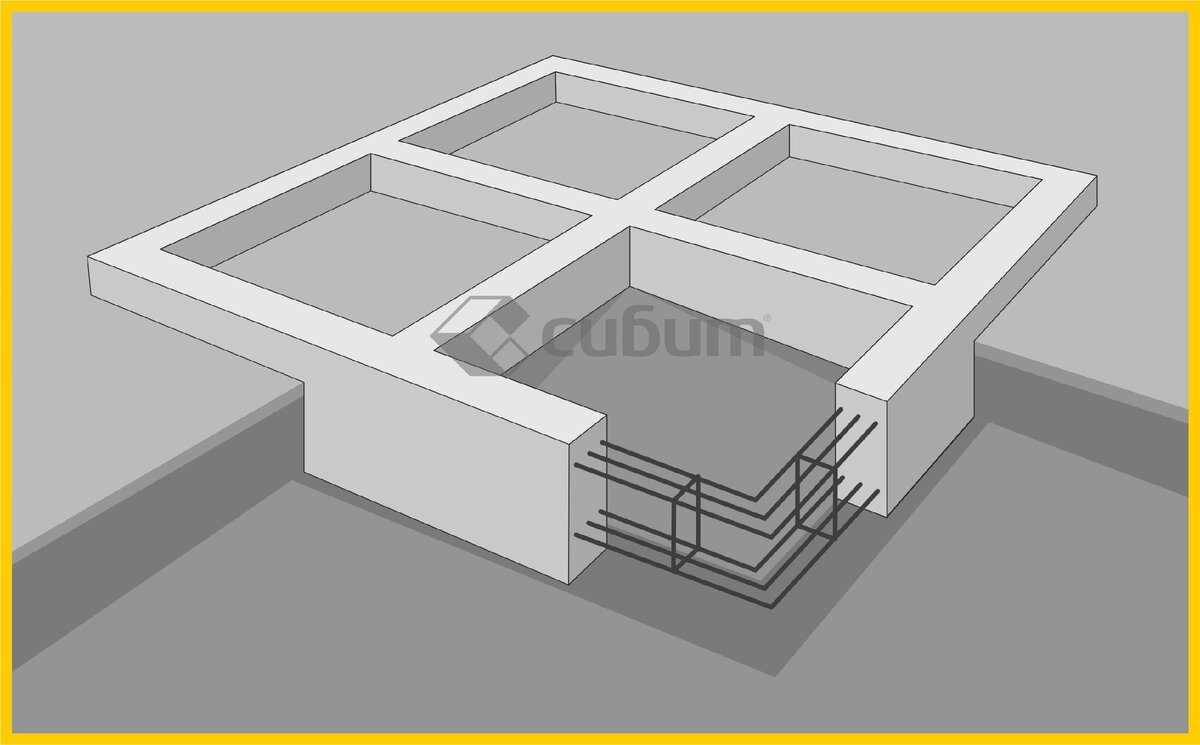 Данный тип фундамента представляет собой замкнутый контур из железобетонных балок, возводимый под всеми несущими стенами здания и передающий и распределяющий подлежащему грунту нагрузку от здания.