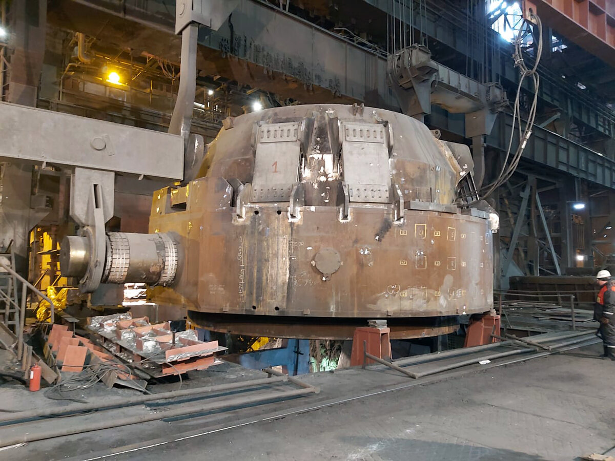 В конвертерном цехе завершилась установка нового корпуса конвертера №3. Старый, в связи с истечением срока эксплуатации был демонтирован.