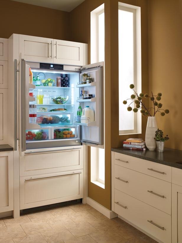 Дизайн холодильник. Важно подобрать модель, которая будет сочетаться с интерьером по цвету и фактуре и не выбьется из общего стиля.