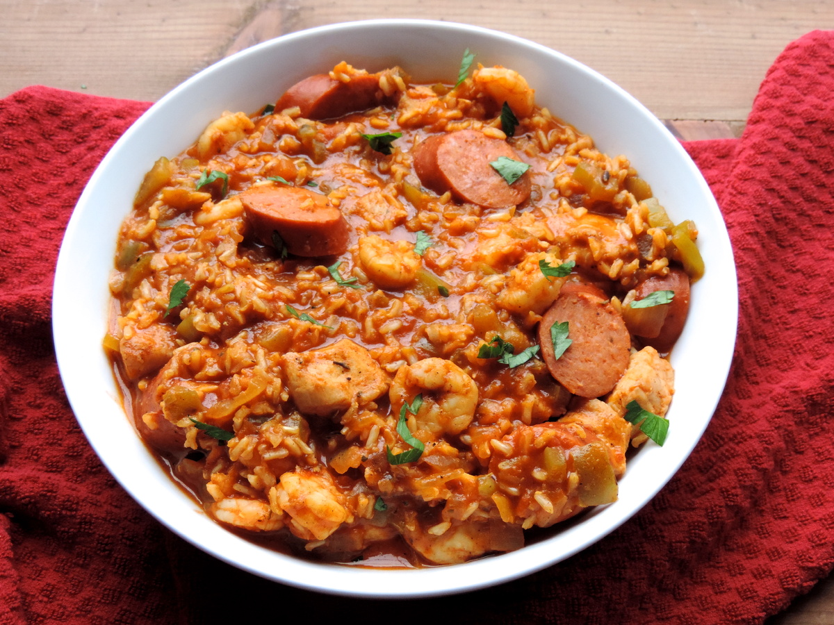 Джамбалайя — блюдо, имеющее испанские и французские корни, было придумано на карибских островах, а затем переселилось на юг США. Креольская джамбалайя происходит из французского квартала Нового Орлеана. Джамбалайя была попыткой испанцев приготовить паэлью в Новом Свете, где шафран не был легко доступен, так как импортировался, поэтому помидоры стали заменителем шафрана. Шло время, французское влияние в Новом Орлеане усилилось, и пряности из стран Карибского бассейна окончательно превратили эту паэлью в уникальное блюдо.