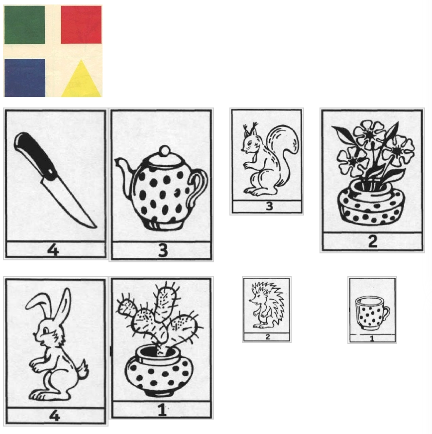 Процедура выполнения : Перед ребенком поочередно кладут таблицы.
