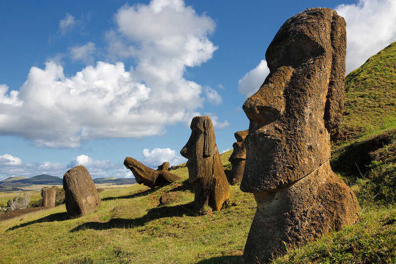Археологи и этнологи затратили много сил, по кусочкам реконструируя культуру жителей Пасхи. Но картина получилась неполной. Ученым удалось выяснить, что на этом небольшом острове существовало два центра культуры: каменоломни Рано Рараку и капище Оронго на краю кратера вулкана Рано Као. Но по-порядку! Рано Рараку - вулканический кратер, на южном склоне которого сохранились древние каменоломни.