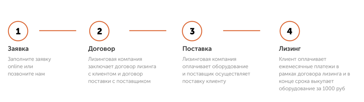 В течение определённого количества месяцев вы платите лизинговые платежи, а когда срок лизинга заканчивается вы выкупаете оборудование за фиксированный платеж в 1000 рублей