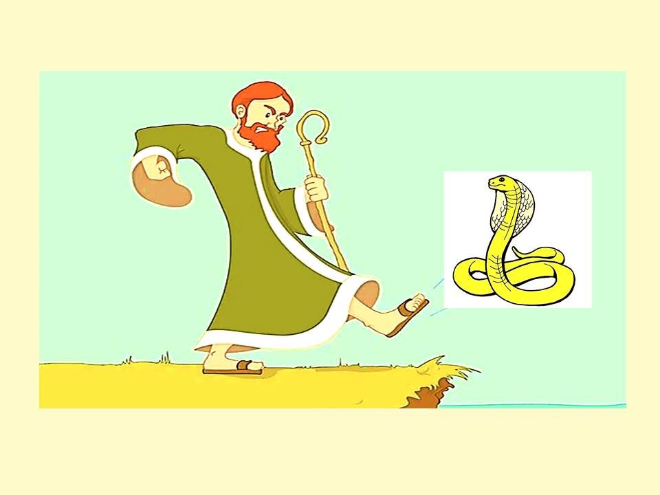 Когда он пошёл через луг, его присутствие так подействовало на змею, что она не захотела его укусить. Увидев её, святой ей сказал: