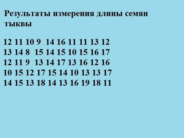 Измеряем длину семян от вершины до основания. Все данные записываем в ряд.