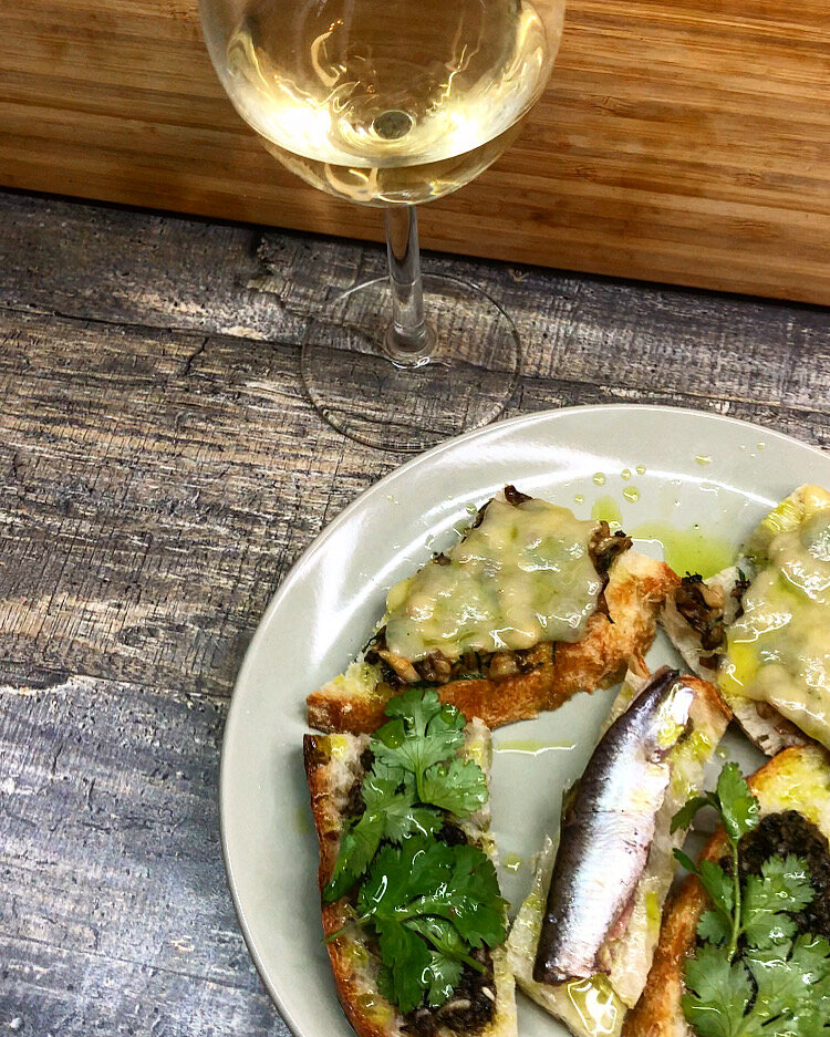 Тааак, хлеб, маслины, грибы, анчоусы, кусочек сыра.
