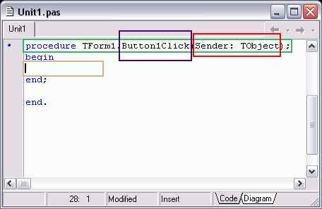 · Имя объекта, которому принадлежит данная процедура (в данном случае она принадлежит форме - поэтому TForm1);