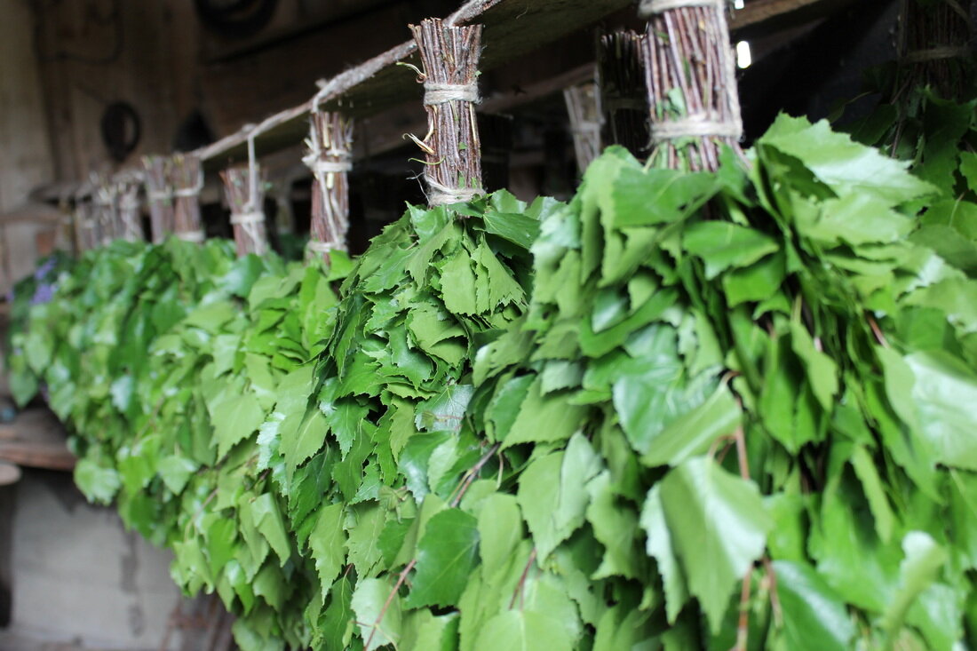Наши бабушки и дедушки развешивали свежие березовые веники под потолками изб, в хлевах, амбарах и на чердаках. Во время сушки веники насыщали помещение фитонцидами. Березовый аромат снимал нервное напряжение и усталость, омолаживал организм обитателей жилища. Веников готовилось немало - из расчета по одному на каждого члена семьи, а мылись в бане зимой - раз в неделю, а летом, в связи с обильным потоотделением - через день. Высушенные веники заворачивали в льняные полотна и укрывали рогожкой. В таком виде они могли сохранять свои целебные свойства в течение нескольких лет.
