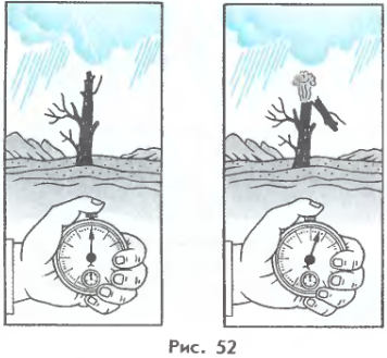 Звук в газах . Известно, что во время грозы мы сначала видим вспышку молнии и лишь через некоторое время слышим раскаты грома (рис. 52). Это запаздывание возникает из-за того, что скорость звука в воздухе значительно меньше скорости света, идущего от молнии.