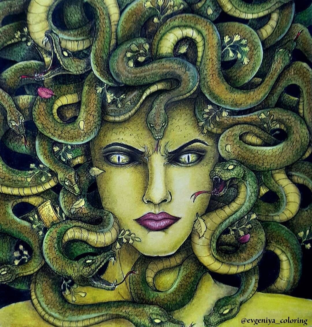 Обозлённая Афина превратила красавицу в жуткого монстра. У неё выросли крылья, а вместо чудесных волос появились клубки ядовитых змей.