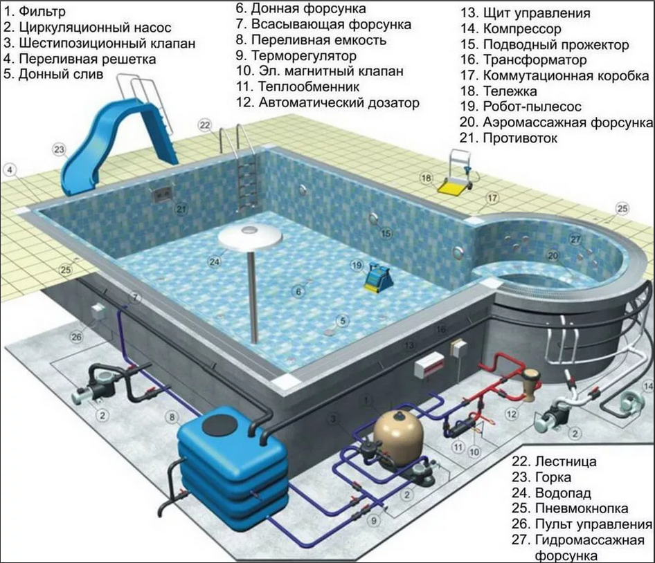 Что касается нормируемых температур, то прочитайте эту статью. С 2021 по бассейнам действуют санитарные правила СП 2.1.3678-20.