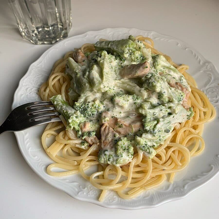 Ингредиенты:✔️Куриное филе 300 гр✔️Брокколи 200 гр✔️Сметана 15%/греческий йогурт 4% 3-5 с.л.✔️Спагеттти (у меня макароны из твёрдых сортов пшеницы) 250 гр✔️Соевый соус 1,5 с.л.✔️Соль Приготовление:1️⃣Нарезаем куриное филе на небольшие кусочки и жарим в соевом соусе. Ставим варится брокколи, варим в кипящей воде 5 минут.2️⃣Отвариваем спагетти(макароны). Перекладываем в одну миску брокколи и курицу, добавляем сметану и соль по вкусу.