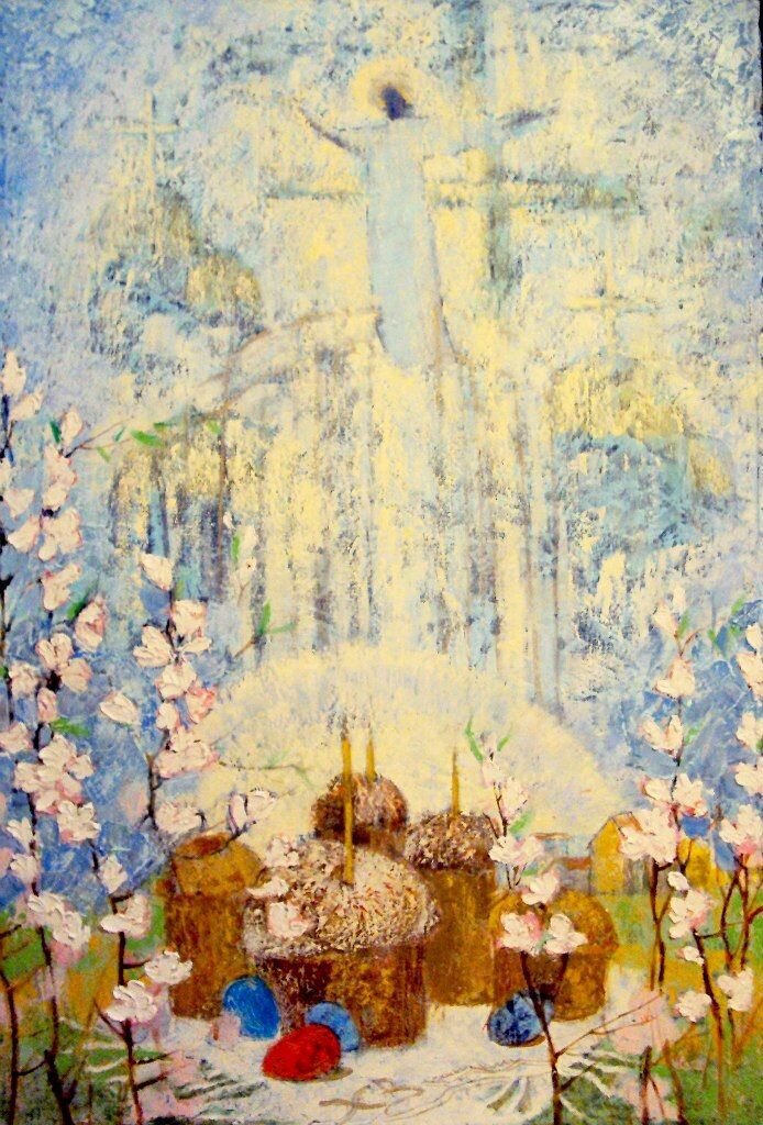 В это мгновение раздался долгожданный возглас: «Христос Воскресе!». И вскоре вся пёстрая и многоликая толпа, вся церковь Христова в упоении пела: «Христос Воскресе из мертых…» И понеслась по Земле, касаясь верхушек деревьев, достигая самого неба, радостная весть: «Христос Воскресе!»