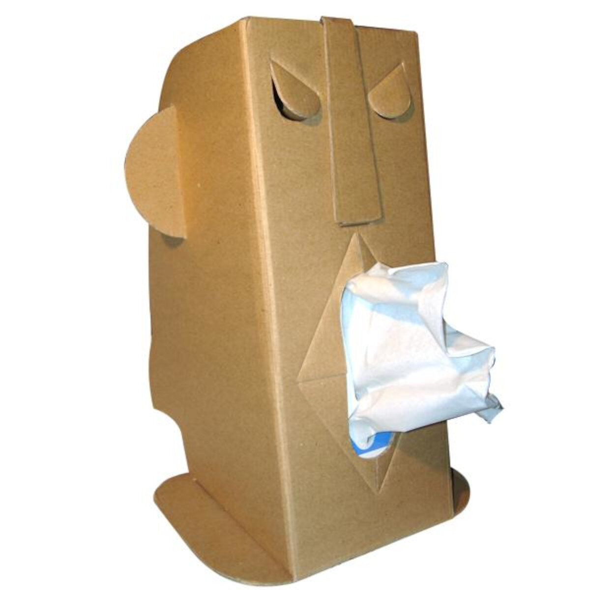 Этот диспенсер для салфеток выполнен в виде головы, со всеми подобающими деталями – нос, уши, глаза и рот – через рот вынимаются салфетки. Такой дизайн делает декоративную и юмористическую коробку пригодной для всех стандартных международных размеров коробок с бумажными салфетками. Внешний вид диспенсера может быть естественным белым или бежевым, или украшенным пользователем.