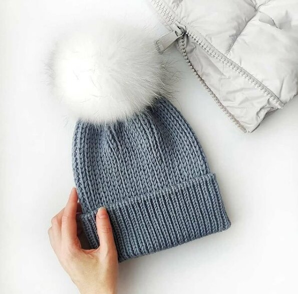 * Готовую шапочку сложить пополам во внутрь, можно немного расчесать щеткой для одежды.