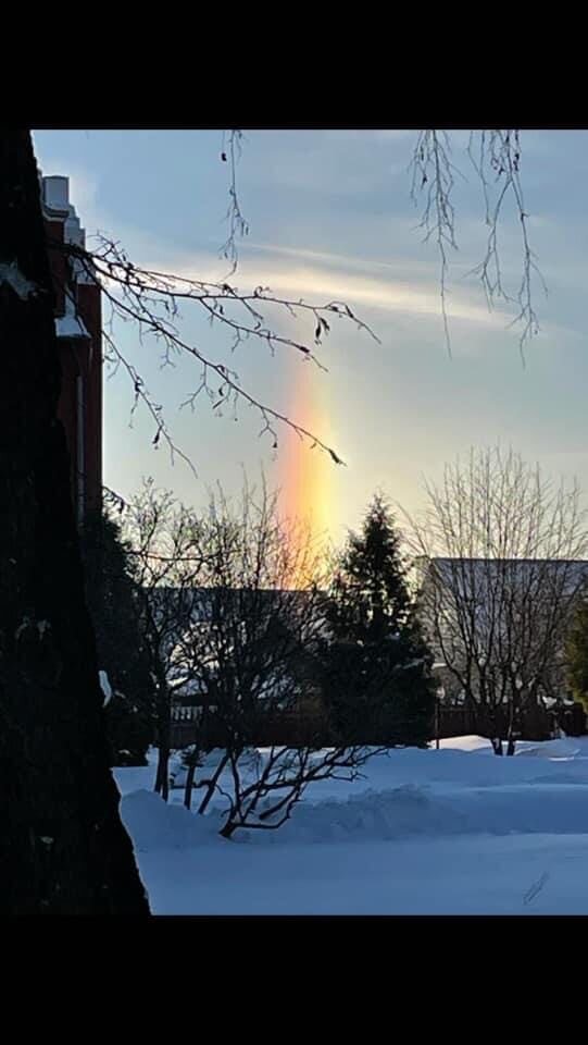 Сегодня наша соседка Наташа сделала фото крайне необычайного явления, которое к тому же оказалось над крышей нашего дома. Явления настолько редкого, что хотя о нем и упоминается в энциклопедиях, но фотографий этого явления я не нашел ни в книгах, ни даже в интернете. Как написали читатели в комментариях, это явление называется "рабдос", "жезл" или "меч". Говорят, что наблюдали его люди несколько раз в Арктической зоне. Но в наших местах, считают, этого явления не происходит. Возможно, вы больше моего знаете об этом явлении, может быть даже видели его - напишите, мне будет очень интересно узнать!