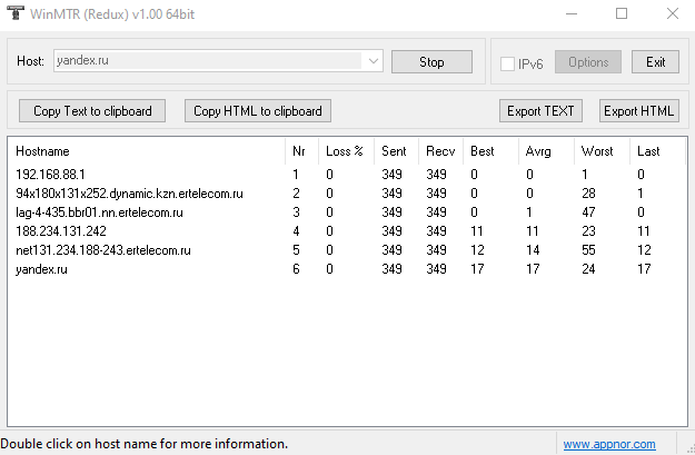 ( если в WinMTR Количество отправленных пакетов и количество принятых одинаковое значит сеть впорядке )