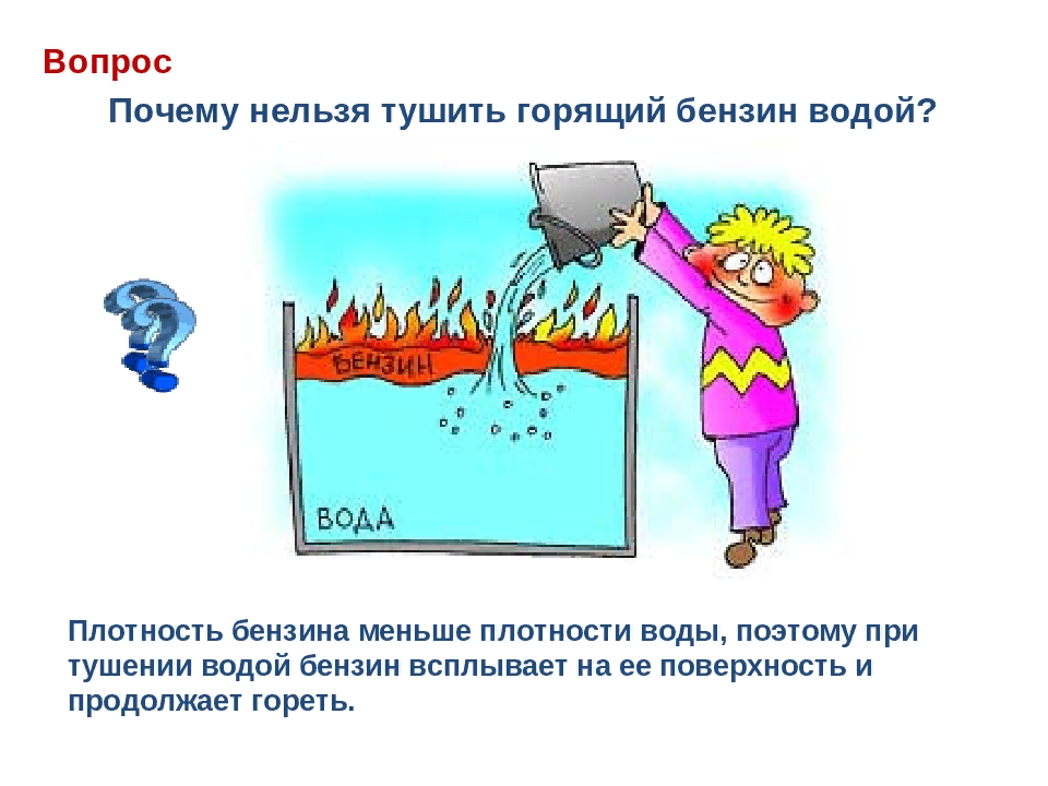 Чтобы что-нибудь сжечь требуется три вещи: топливо как источник горения (например, лист бумаги), окислитель (например, кислород) и тепло (например, спичка). При удалении любого из этих элементов, огонь будет потушен.