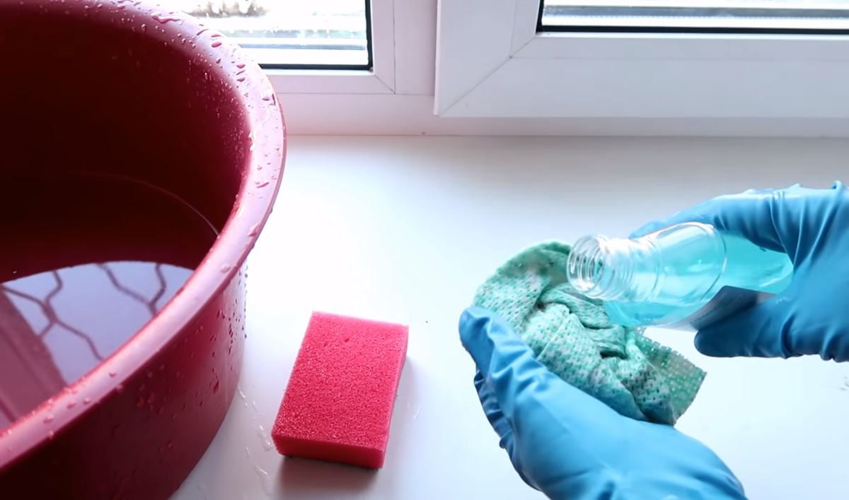 Как только очистили окна от грязи, берем самый дешевый ополаскиватель для полости рта и губку или мягкую тряпочку, чем вам удобно пользоваться. Смачиваем водой, наносим небольшое количество этой жидкости и начинаем всё протирать. Грязь убирается "на ура", даже белые подоконники сразу очищаются. Никаких дополнительных средств не нужно.