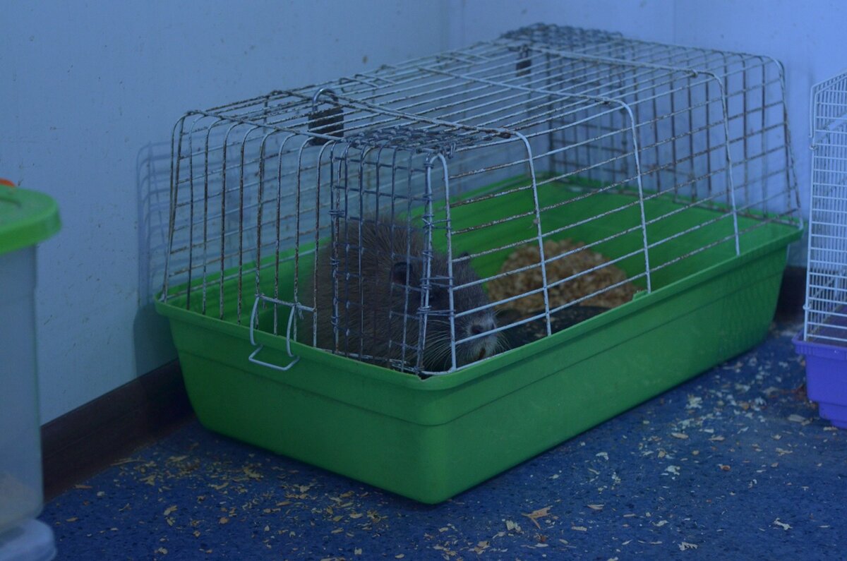 В приют нутрия приехал в маленькой, для его размера, клетке. Сидел без движения, в одной позе, мог только повернуться с одной стороны в другую, ни сесть, ни встать у него возможности не было, он не мог умыться, что очень важно для нутрий, емкость с водой некуда было поставить. Я была в шоке от такого отношения к животному, даже представить себе побоялась, сколько бы ему пришлось жить в этой клетушке, пока у него появится своя клетка или вольер. Нутрёнышу повезло, как и его собратьям по несчастью, добрый Доктор Айболит пришёл им на помощь, благодаря неравнодушным людям и ответственным действиям их бывших хозяев. Да, я не оговорилась, в сложившейся ситуации бывшие хозяева поступили ответственно по отношению к питомцам, они понимали, что только загубят животных, пока соберут средства на вольеры, и были даже рады, что нашёлся выход.