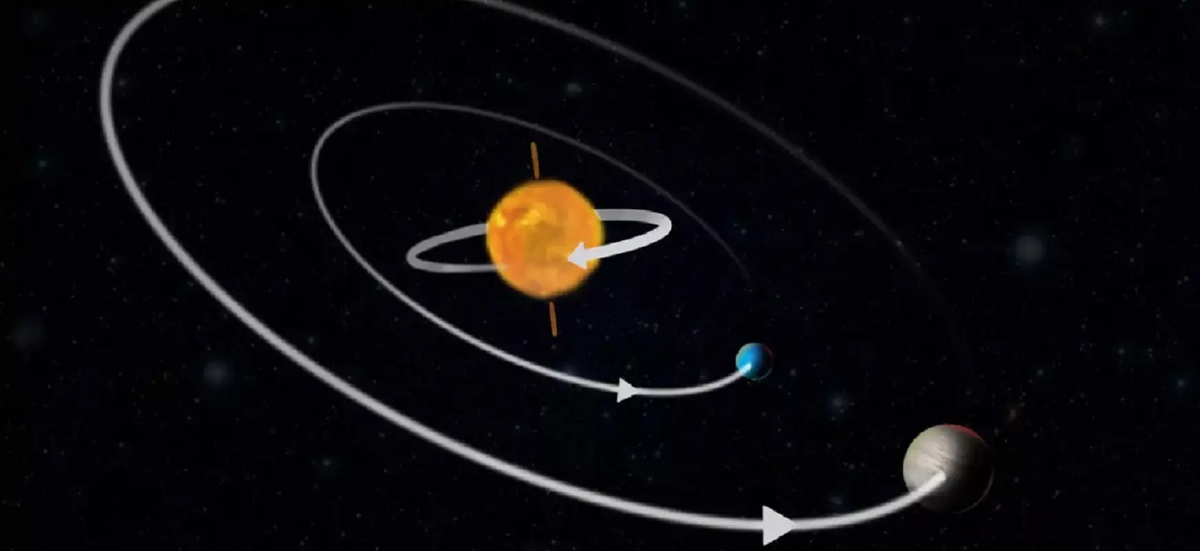 Ось вращения звезды K2-290A наклонена на 124 градуса от плоскости, по которой ее планеты движутся вокруг нее.