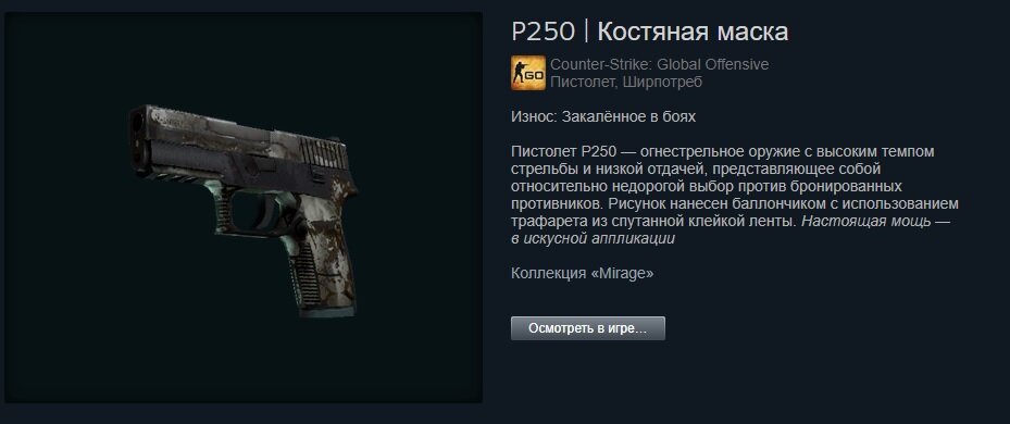 Перед вами ширп с коллекции "Мираж", P250 Костяная маска.