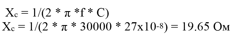 действующее значение сетевого напряжения - U д =220 V , частота собственных колебаний контура – f = 30000 Гц, ёмкость конденсатора контура - C = 270 nF , входную активную мощность приму P а = 50 Вт.