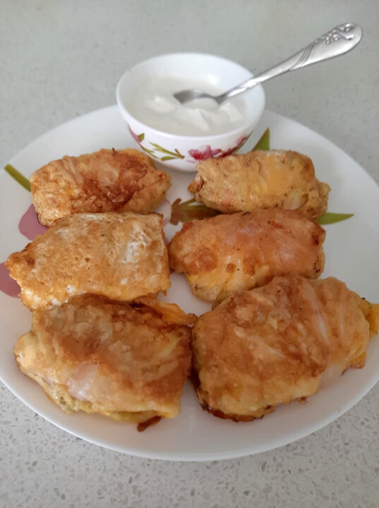 В разогретой сковороде обжарить рулетики с двух сторон. За пять минут до готовности накрыть крышкой.