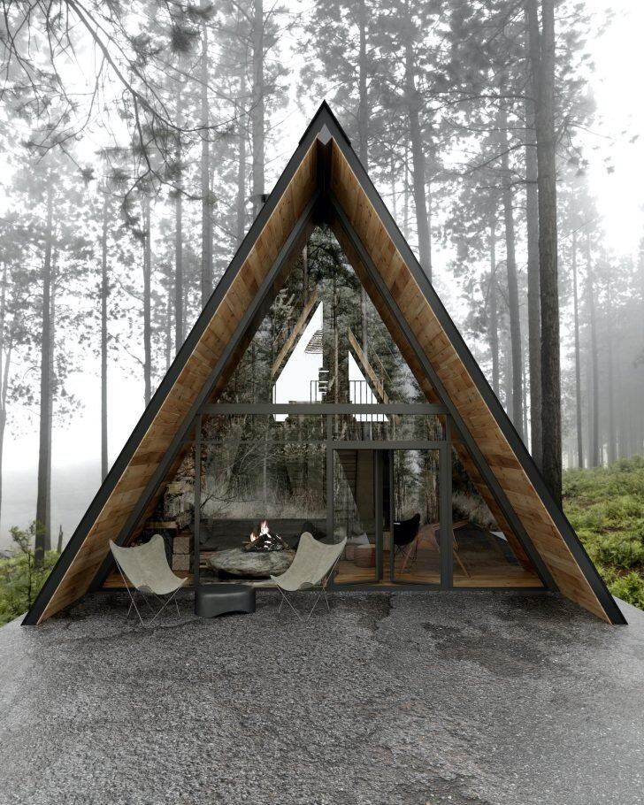 Яна Придальна спроектировала этот вдохновляющий дом посреди леса на озере Тахо, Калифорния. Яна переосмыслила традиционную типологию А-образной формы для отдыха на выходных, объединив ее с тщательно продуманным внутренним пространством.