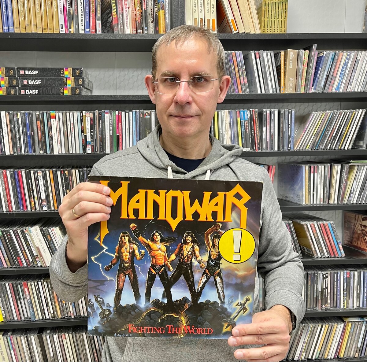 Сегодня в нашей виниловой лавочке праздник - годовщина моего любимого альбома группы Manowar. Где-то под потолком празднично летают магнитные ленты от аудиокассет, рекой льется жидкость для мытья пластинок, крутилка громкости на усилке повернута вправо - специально для композиции Blow Your Speakers.