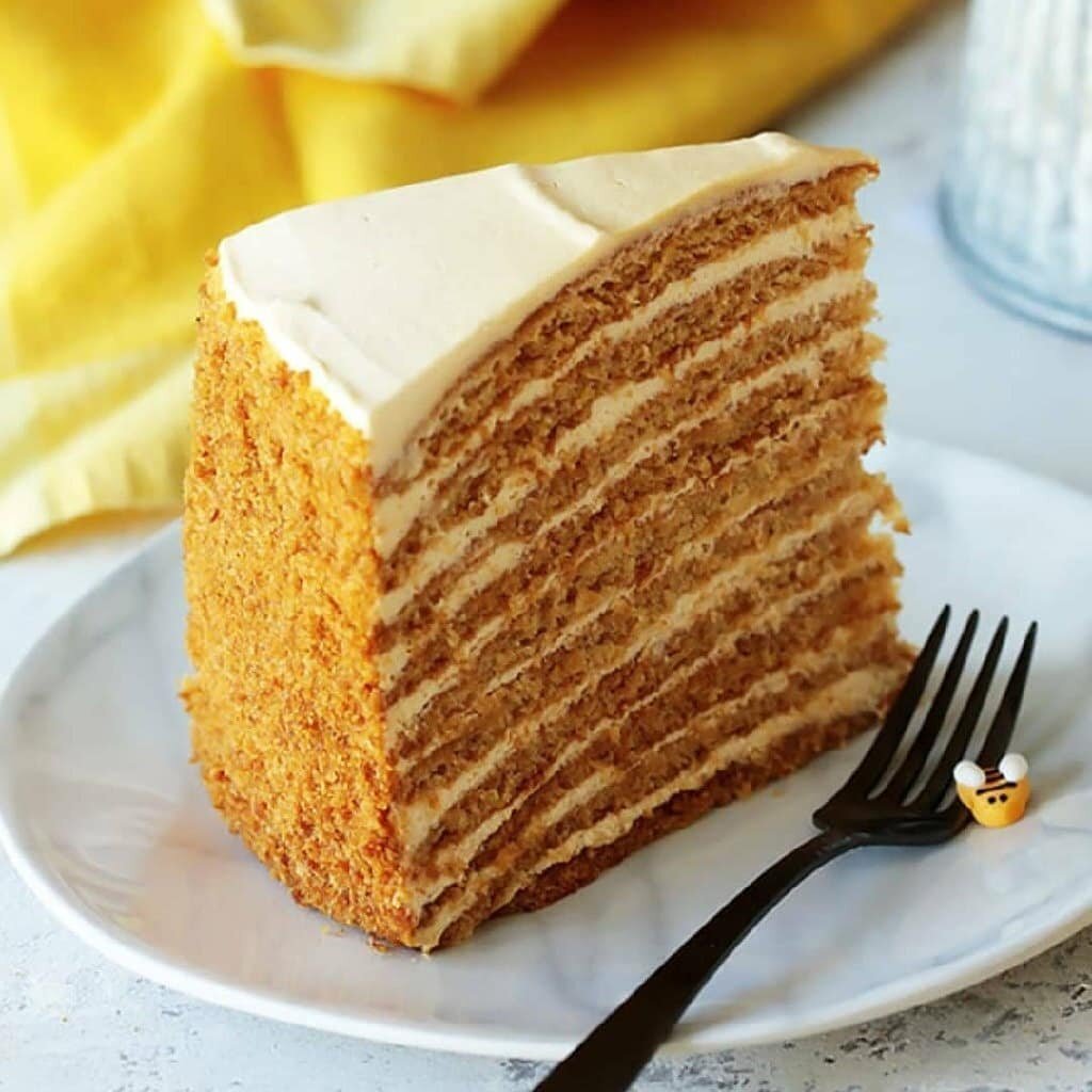 💛 Раскатываем скалкой тонкие коржи и вырезаем круги любого диаметра. У меня была тарелка ~12см и получилось 13 коржиков.
