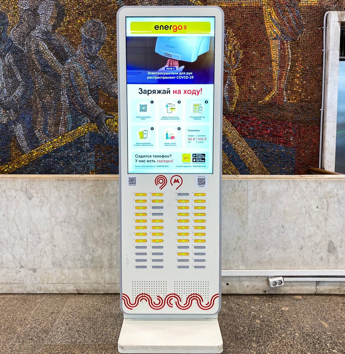 В конце декабря в метро появились первые терминалы, в которых можно взять в аренду внешний аккумулятор. Сейчас на разных станциях их 50, а всего в метро станет 100.