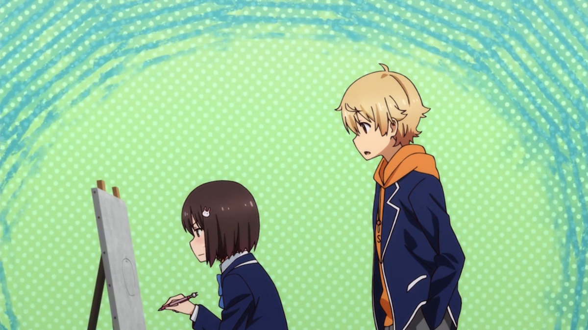 Как такового сюжета тут нет, ведь нас просто погружают в данный мир и показывают развитие персонажей и трудности, с которыми им придётся столкнуться. В основе лежит художественный клуб со слегка странными участниками, но об этом в персонажах. А пока про сюжет. Каждая серия, в среднем, разделена на 2, а то и 3 истории, которые хоть каким-то образом касаются наших главных героев. В обычное время, я бы сказал, что мне сюжета не хватает, но сейчас, когда я просто хочу посмотреть неназойливый сериальчик- это в самый раз.