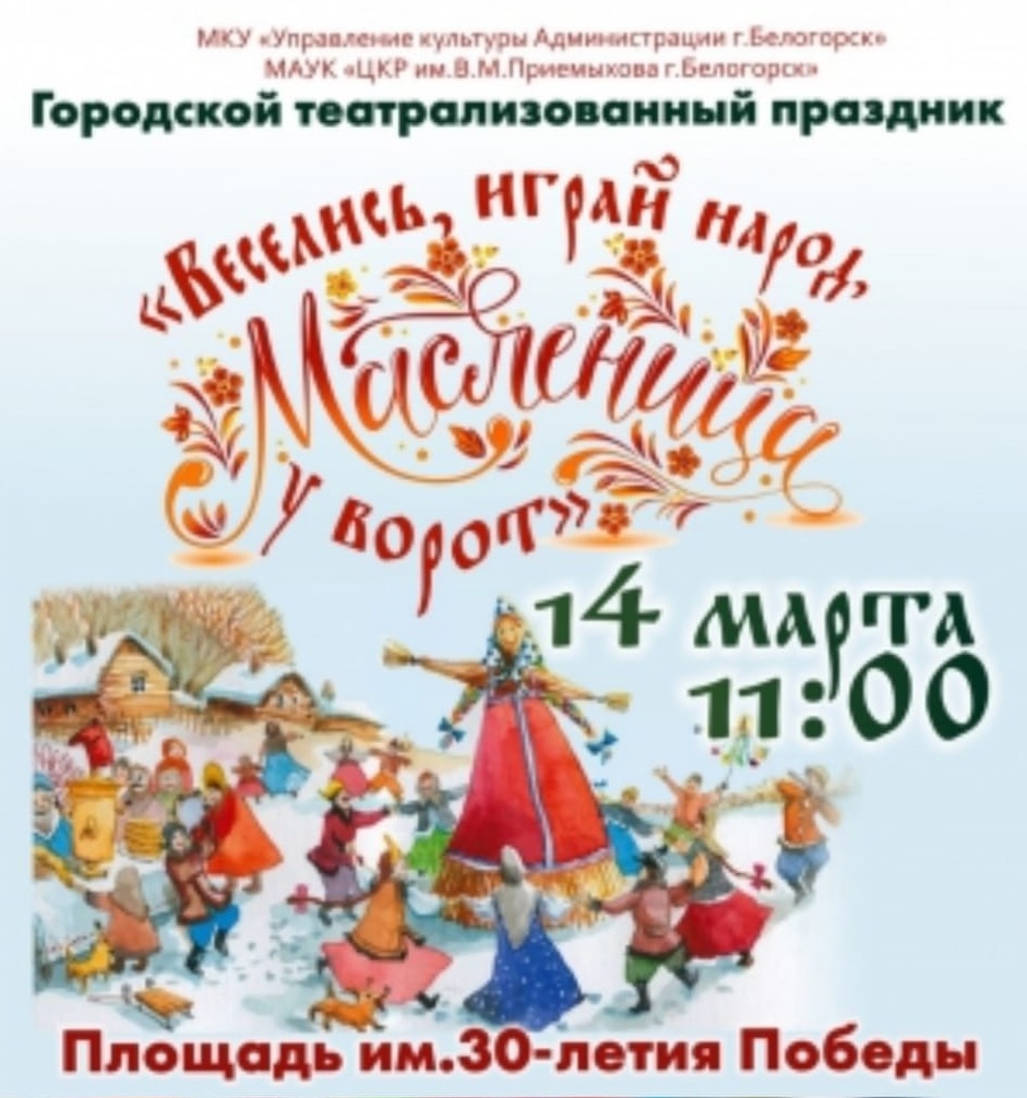 На центральной площади Белогорска 14 марта проводят зиму. Начнется мероприятие в 11:00 с костюмированного масленичного шествия от здания Музея до площади им. 30-летия Победы.