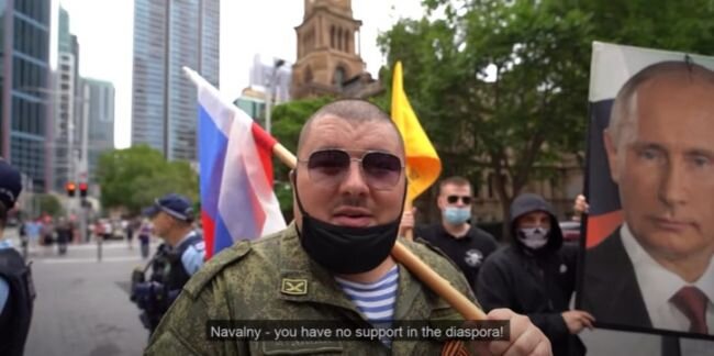 В интернете обсуждают видеоролик , где несколько русскоговорящих мужчин в Сиднее противостоят толпе навальнистов. Участники пророссийской акции пронесли по улицам австралийского города портрет Владимира Путина , транспарант «Наш президент», российские флаги. В колонках звучал гимн России. К акции присоединился чемпион Австралии по боксу Тим Цзю (сын легендарного Кости Цзю ), заявив: «Конечно, я здесь за Путина».