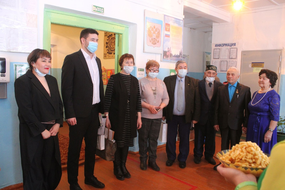 Мероприятие открыли ведущие, а директор школы Нурниса Шавалеева на правах хозяйки представила гостей, которые, в свою очередь, как и полагается гостям, пришли не с пустыми руками, а с подарками: Руслан Абдуллин и Нурия Иксанова вручили школьной библиотеке книги на башкирском и русском языках, Ирина Валеева одарила подарками ветеранов труда, а Руслану Маратовичу и Нурии Сагитовне вручила в знак благодарности районную Книгу Памяти о наших земляках, воевавших в Великую Отечественную войну.