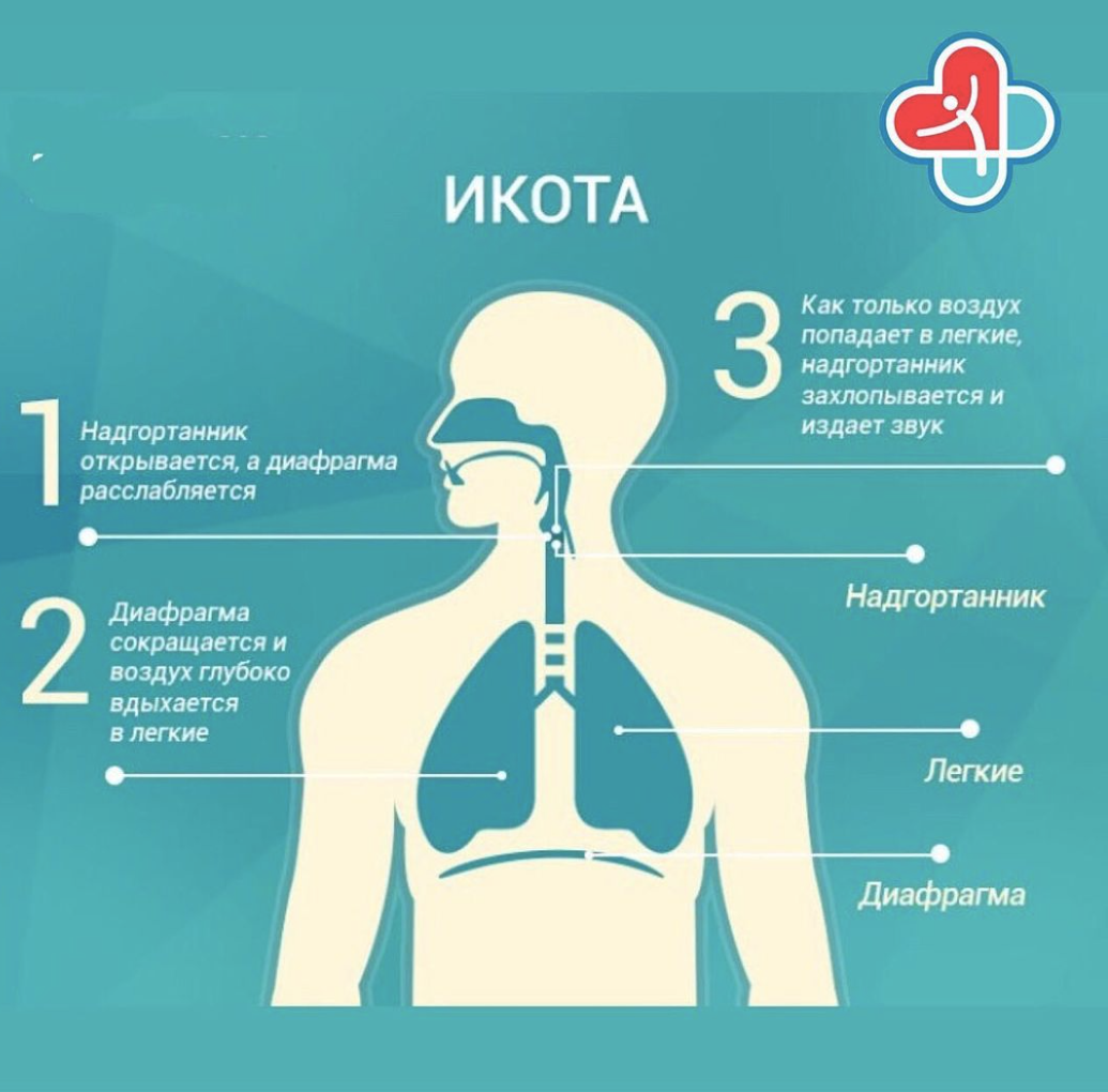 Всё дело в диафрагме и нервах, пронизывающих тело. Начнём с диафрагмы - это мышца, отвечающая за дыхание. Она расположена непосредственно под легкими. Когда диафрагма и межреберные мышцы начинают сокращаться - происходит резкий вдох одновременно с закрытием голосовой щели. В результате, человек издаёт всем знакомый звук 🤭