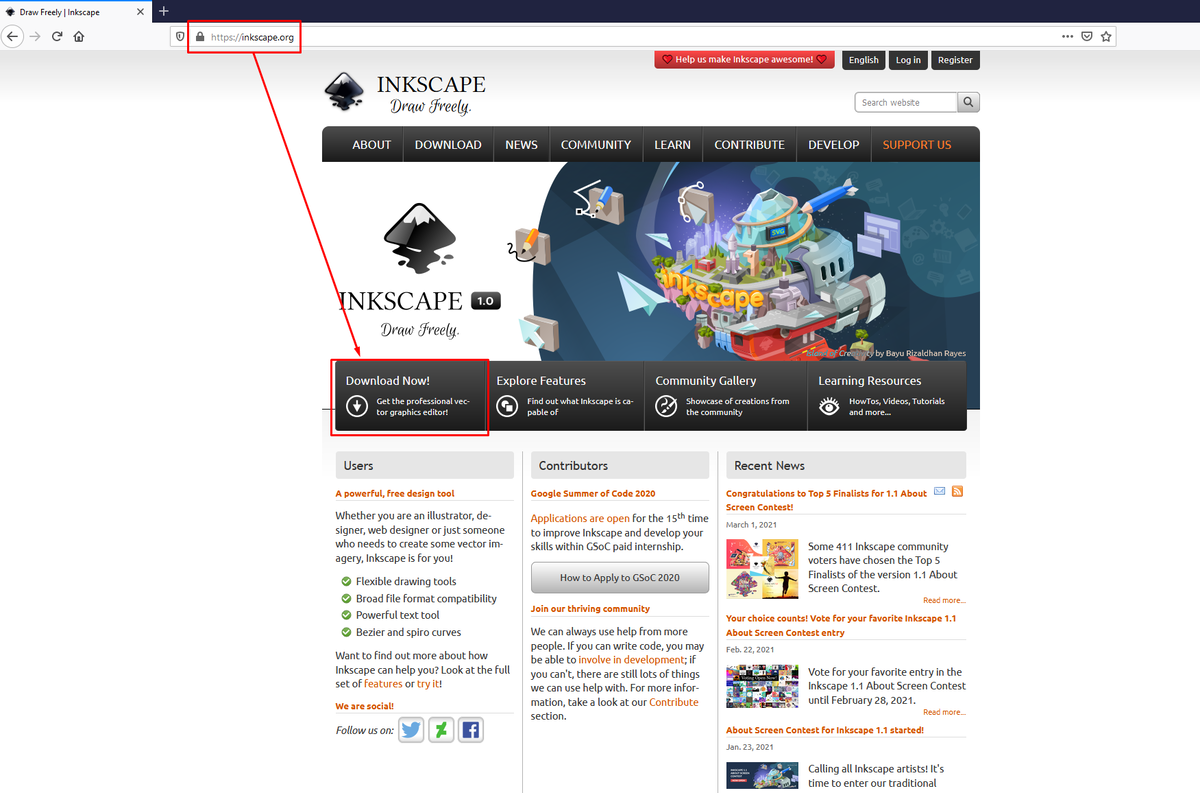 Кроме рисование геометрических примитивов, Inkscape поддерживает также добавление текста с различными эффектами, в том числе написание текста по кривым линиям