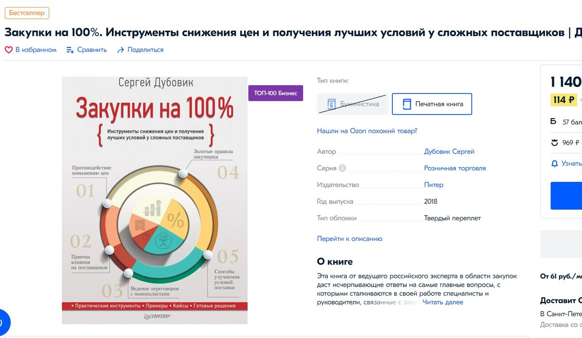 Вышла 7-я допечатка тиража книги «Закупки на 100%». Книга входит в «ТОП 100» бизнес-литературы на OZON .