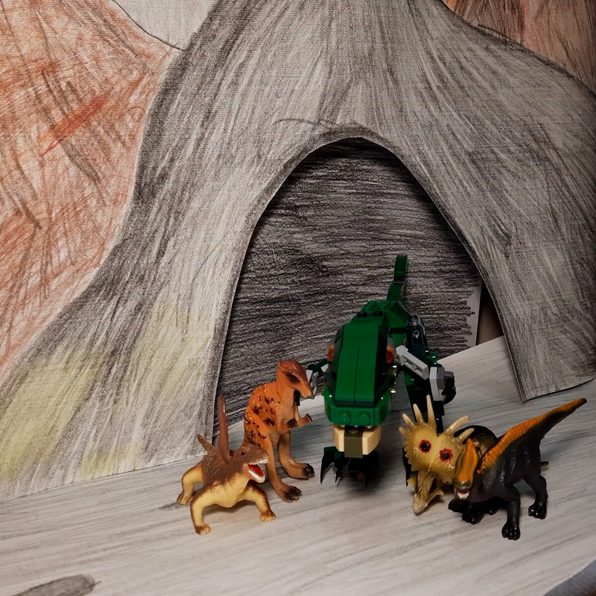 «Что же за гигантский динозавр должен обитать в такой большой пещере?» - подумали динозаврики.