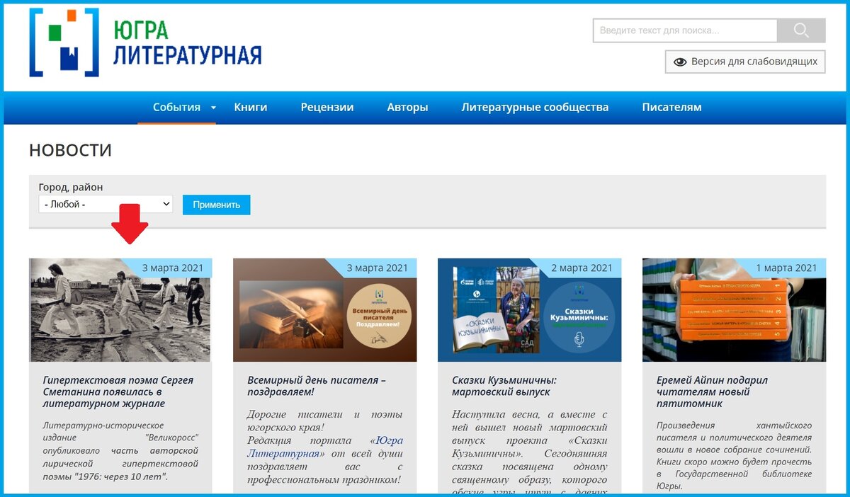 Новость "Югры Литературной"