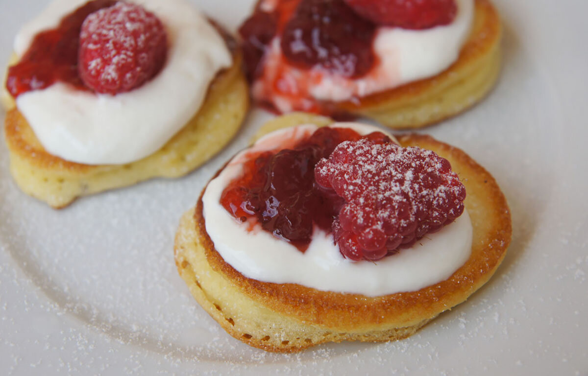 Украсить по своему вкусу, например сезонными фруктами, домашним джемом и сметаной.