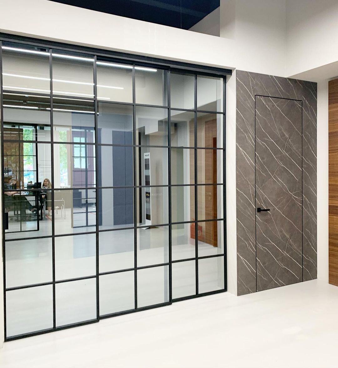 Уже не первый год популярны «двери–невидимки». Они совершенно незаметны на стене, так как у них скрытый короб. Причем двери можно полностью замаскировать, например, оформив акцентную стену с использованием молдингов.