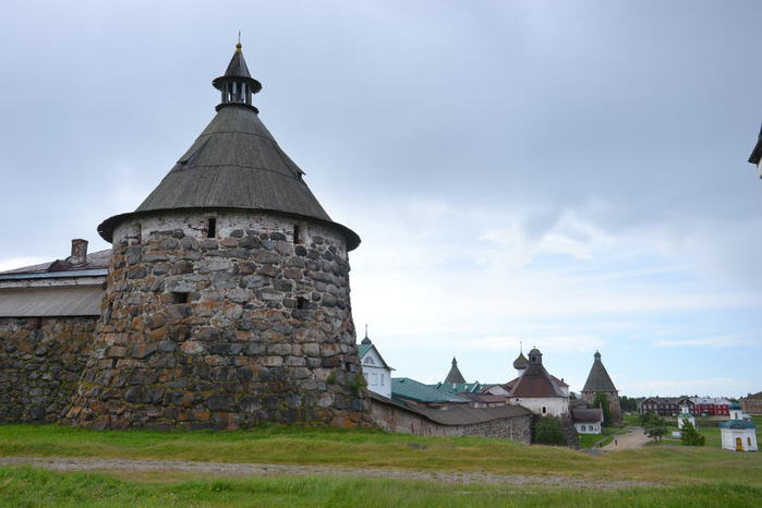 ...Прежде, по виденным ранее фото и картинкам, стены и башни Соловков казались мне небольшими. Это ложное впечатление, видимо, создаётся, с одной стороны, пропорциями башен (Они -"толстые". Коренастые). С другой- каменными валунами кладки. (Мне и в голову не приходило, что они столь огромны. Видел прежде средневековые замки в Прибалтике. Построенные из "дикого" камня. Так камни там использовались лишь таких размеров, чтоб посильно было поднять одному-двум каменщикам. Соответственно, размеры камней соловецких стен представлял примерно такими же).