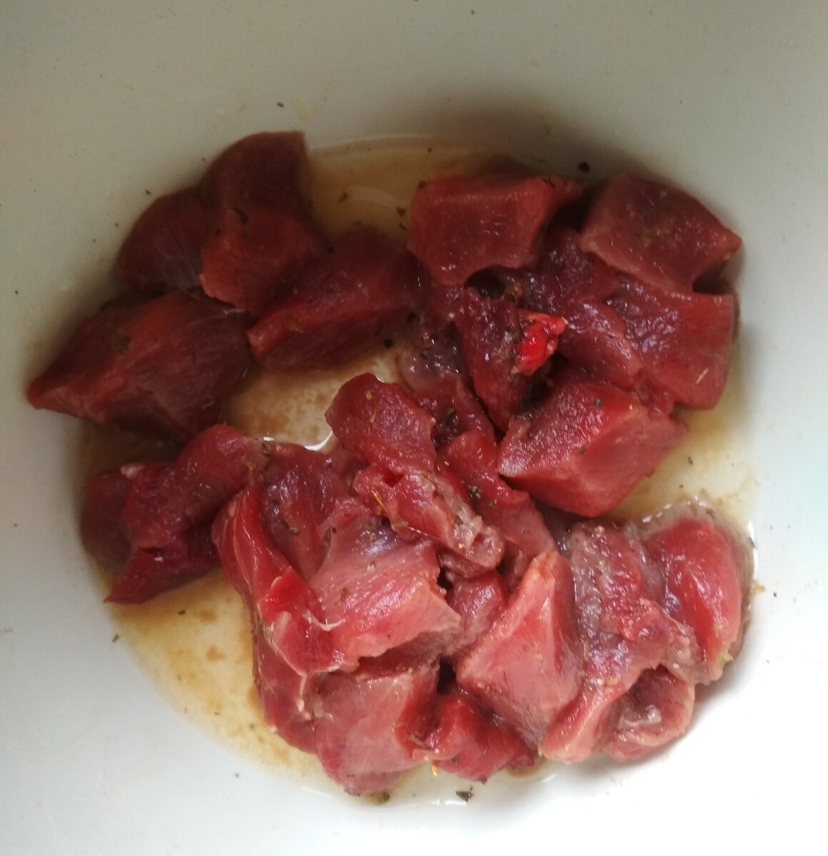 Судя по информации из интернета, это мясо плотное и жёсткое (с этим соглашусь), имеет сильный запах ( но я ничего особенного не учуяла). И поэтому его обязательно надо сначала мариновать, а потом долго тушить.