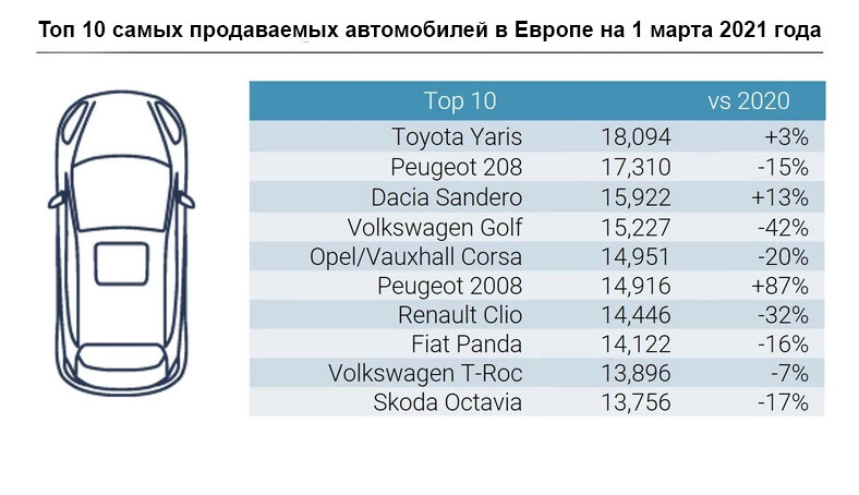 Volkswagen Golf был самым покупаемым новым автомобилем в России и Европе на протяжении многих лет. Однако, время не стоит на месте. Начало 2021 года осталось за совершенно другими марками.