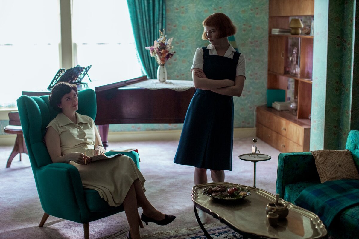 По ходу сериала жилое пространство вокруг Бет всё время преображается. Из темных застенок и своего шахматного подвала она попадает в благоустроенный дом с уютной гостиной, светлой столовой с винтажными обоями и очаровательной детской комнатой (которая, впрочем, юной Бет совсем не подходит).
