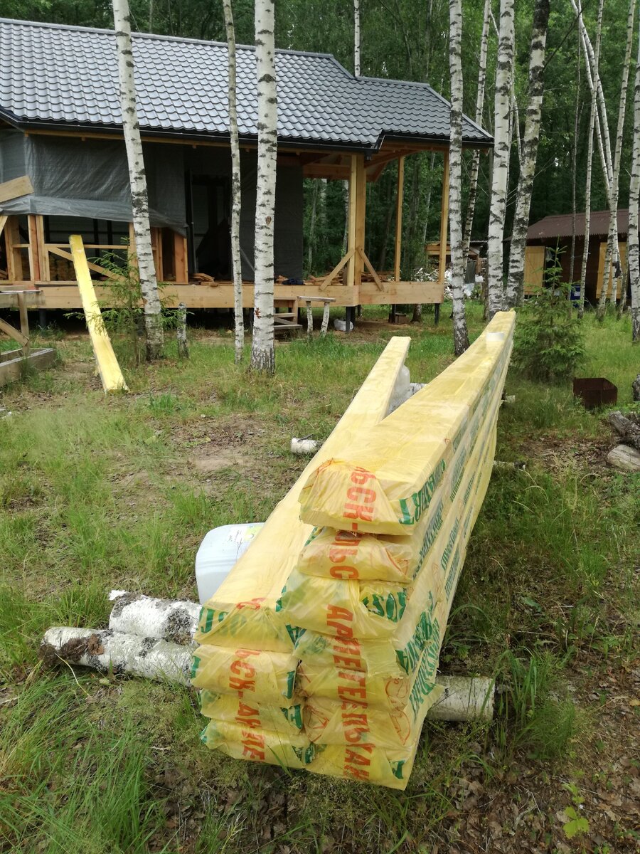 Потом все пачки были перенесены мною в дом. Длина 6 метров, каждая пачка весит внушительно, было весело. Благо стен и окон еще нет и можно заносить через любой проем ))
