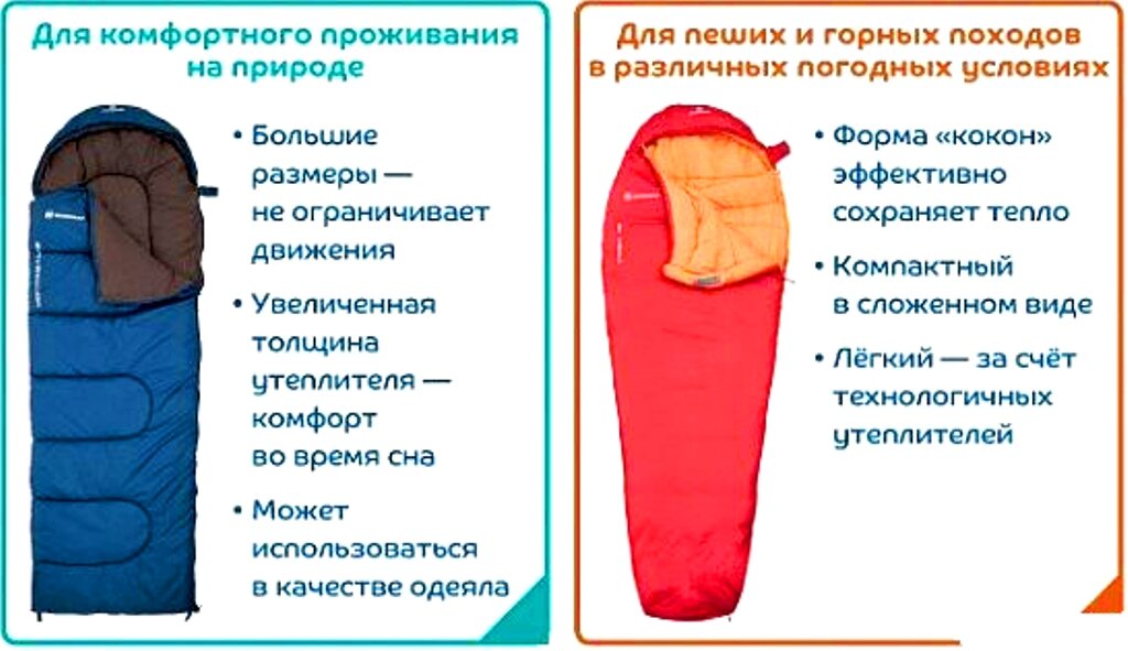 Теперь вы, обладая информацией о преимуществах и недостатках каждого типа спального мешка, можете выбрать именно тот, который подходит вам.